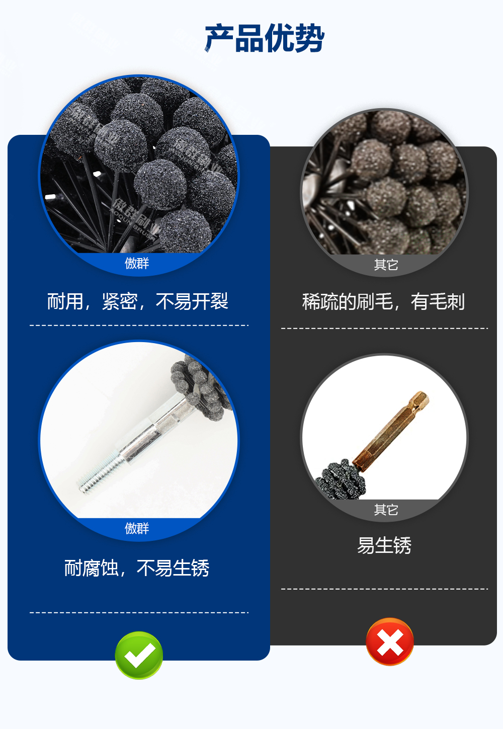 - 產(chǎn)品特點(diǎn):刷絲牢固,不易脫落,操作簡(jiǎn)單,快速拋光清潔