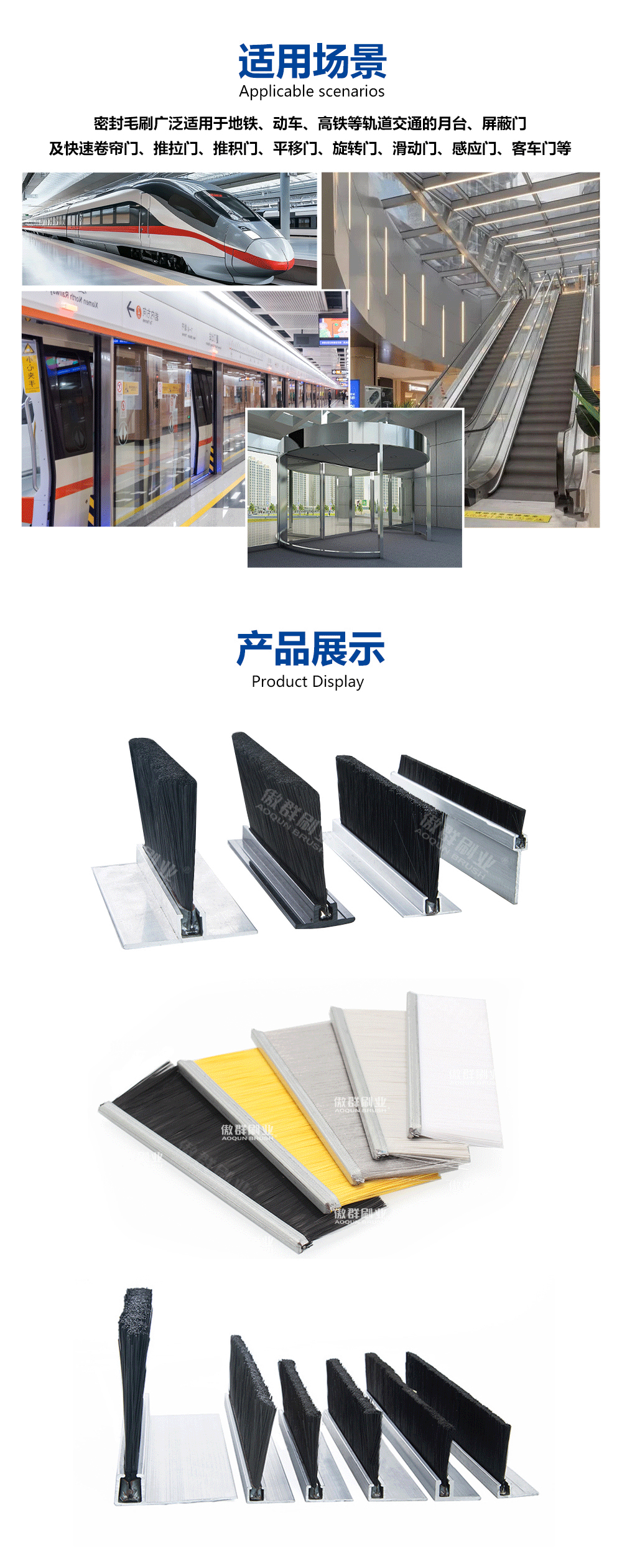 - 功能/用途:密封毛刷廣泛適用于地鐵、動車、高鐵等軌道交通的月臺、屏蔽門及快速卷簾門、推拉門、推積門、平移門、旋轉(zhuǎn)