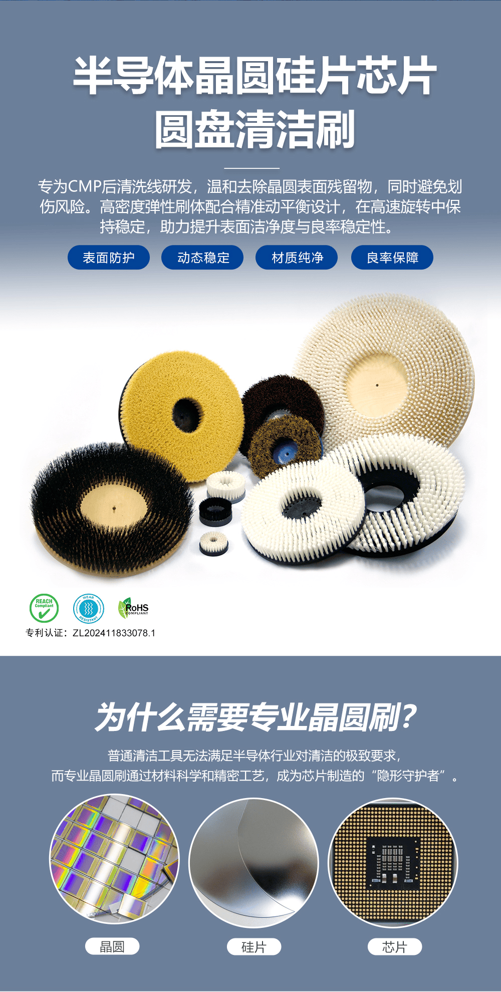 晶圓硅片芯片清潔圓盤刷