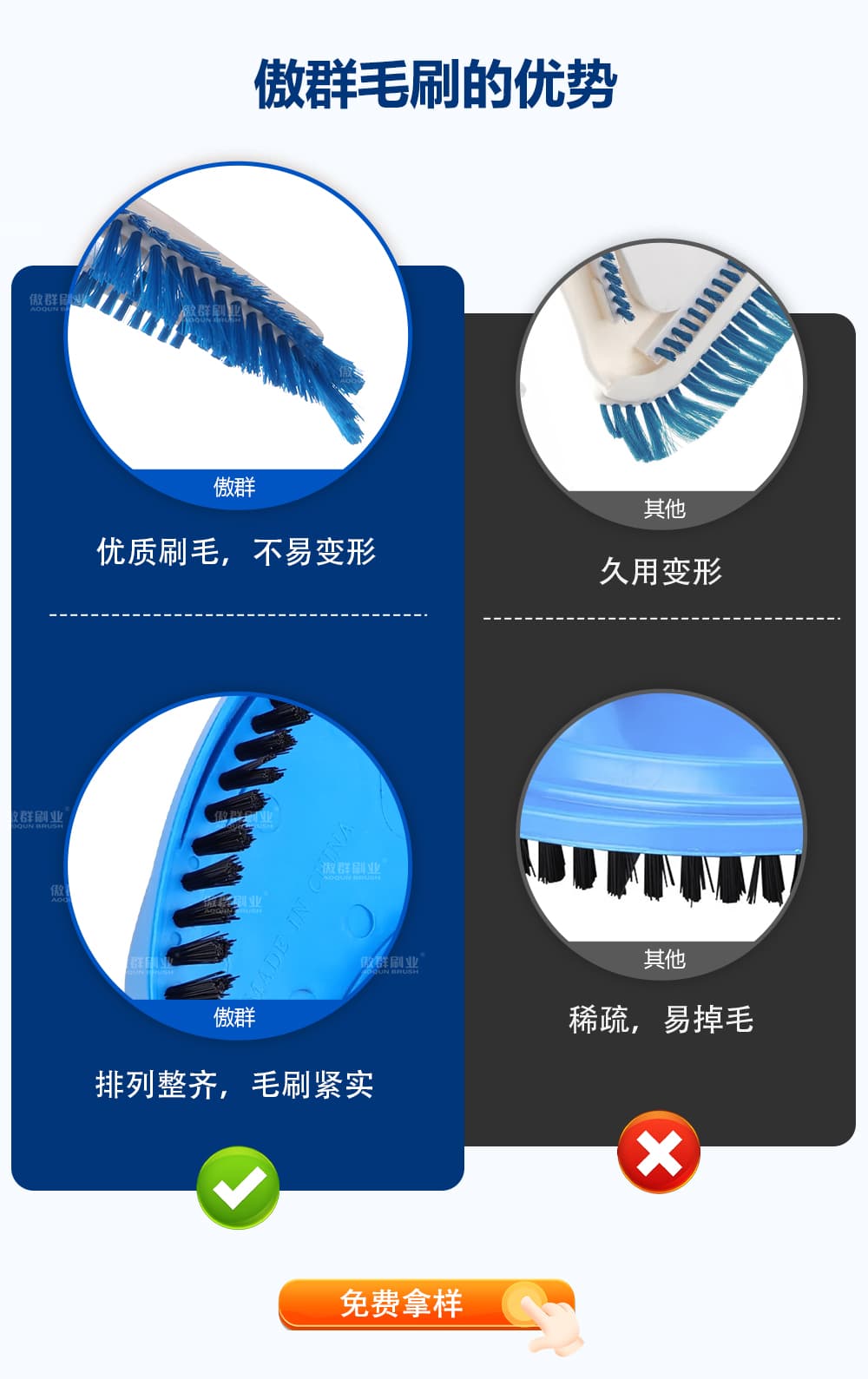 - 產(chǎn)品性能:耐磨耐用、毛刷緊實(shí),不易變形